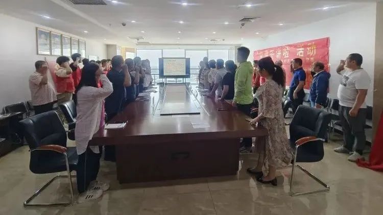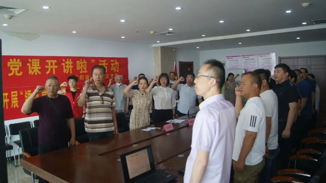 “我志愿加入中國共產黨,擁護黨的綱領,……”,滏東街道人大主任高彥章同志帶領全體黨員重溫入黨誓詞。滏東街道人大主任高彥章、黨建辦主任胡海芹先后圍繞“不忘初心,堅定黨性”、“探析黨的精神之源——傳承弘揚偉大建黨精神”為主題進行黨課講解。